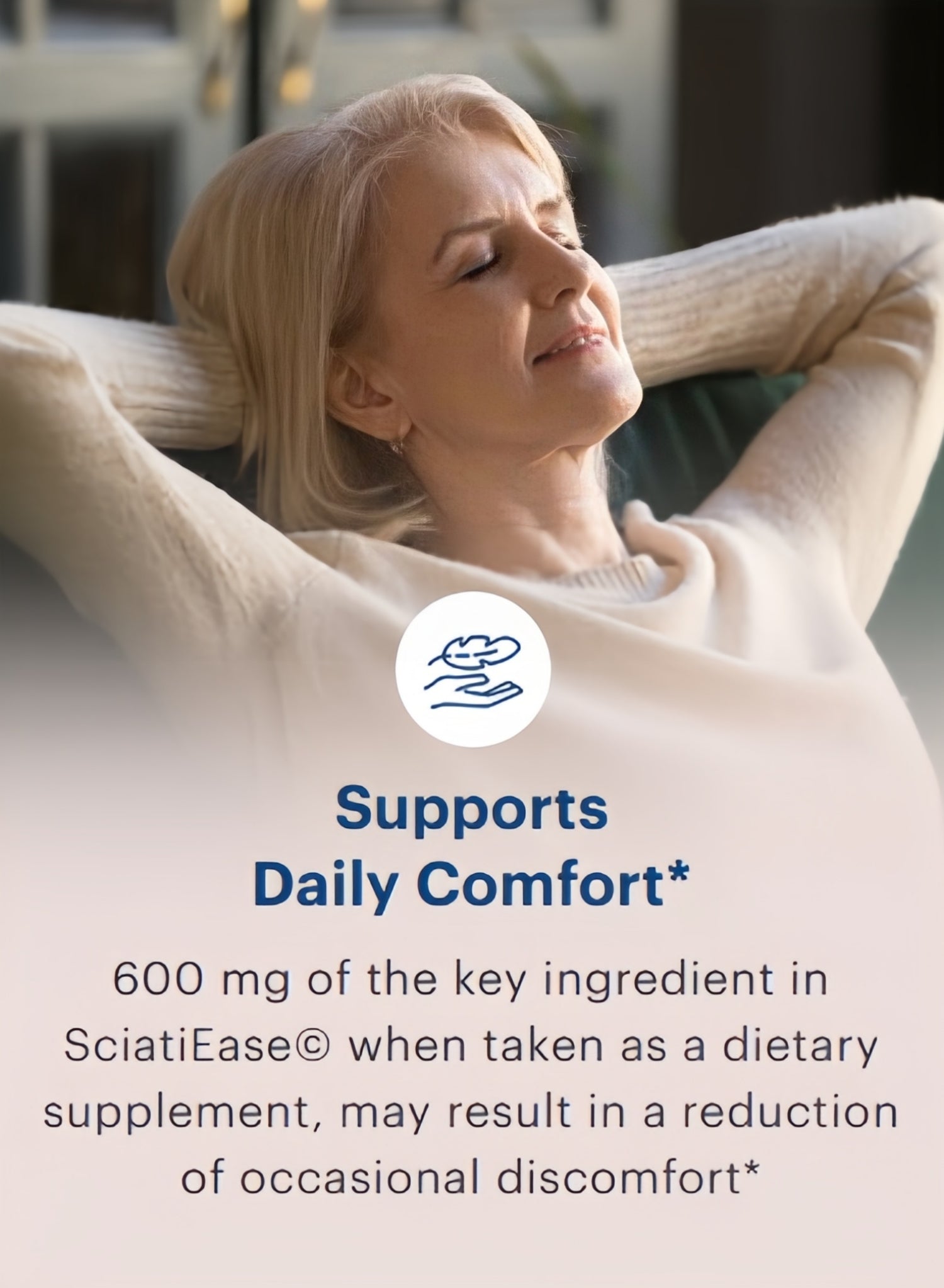 SciatiEase offers support for sciatic nerve health to help you live a comfortable & happy life.
